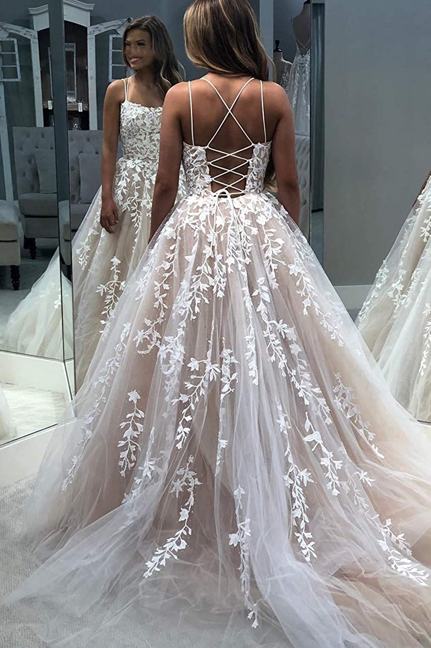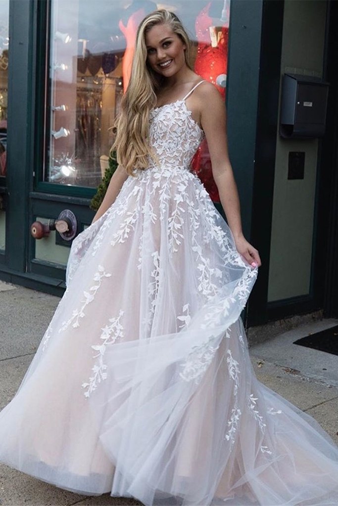 PSY348,Lace Applique Prom Dresses,A-line Prom Dresses,Lace Up Back Prom Dresses