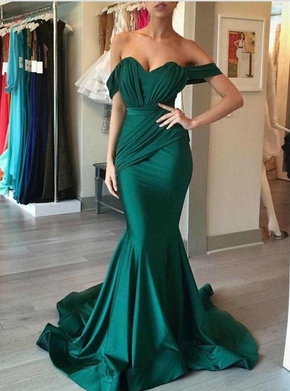PSY454,Trumpet/Mermaid Sleeveless Off-the-Shoulder Sweep/Brush Train Ruffles Spandex Dresses