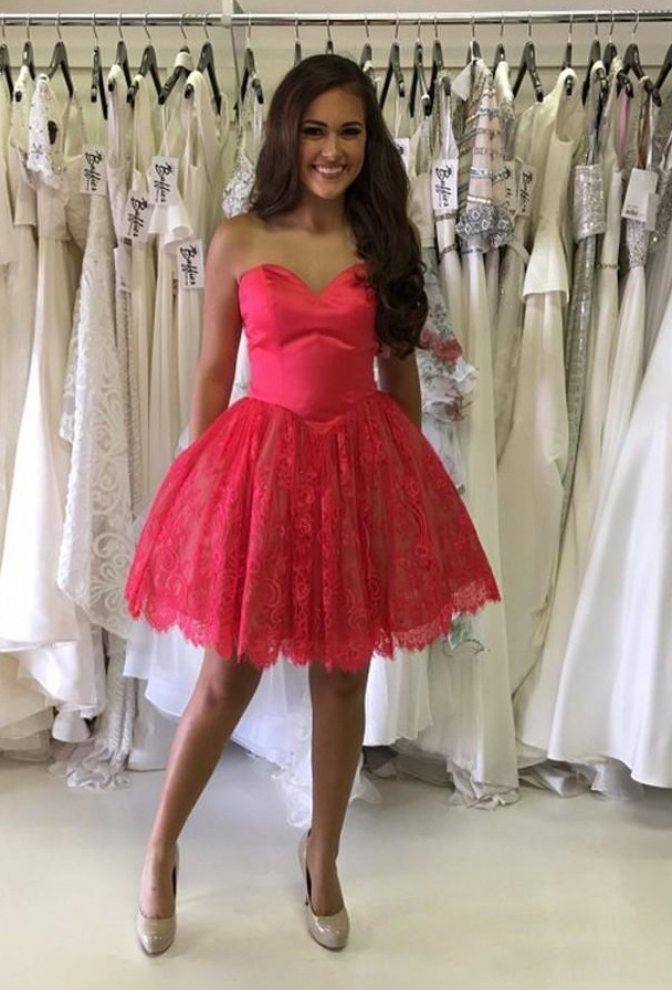 PSY305,Cute Sweetheart Short Lace Knee Length Homecoming Dress