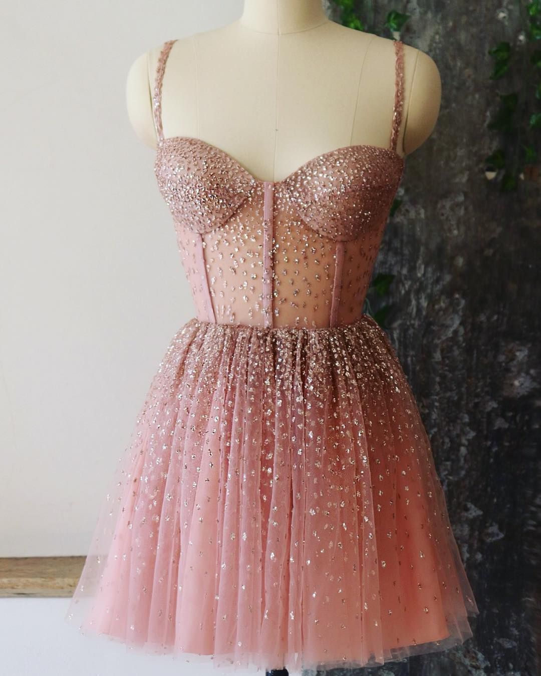 PSY373,Straps Rhinestone See Through Dusty Pink Homecoming Dresses Online,Cheap Short Prom Dresses