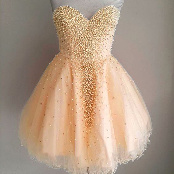 PSY375,Sweetheart Pearl Beading Organza Homecoming Dresses