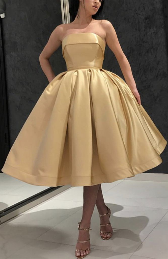PSY539,Gold Short Prom Homecoming Dresses Simple Strapless 8th Graduation Dresses