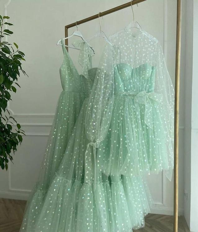 PSY706,Fashion green tulle lace fabric , Shinning colorful heart tulle lace,Girls Party dress,Brithday dress tulle