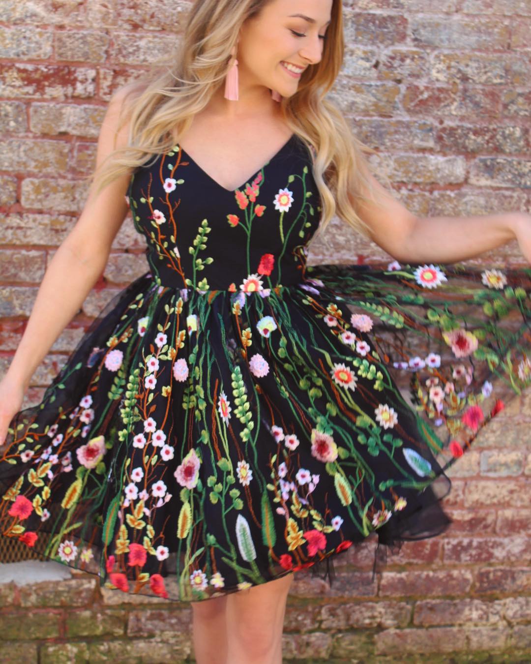 PSY484,Black short prom dress homecoming dress, floral embroidery prom dress homecoming dress