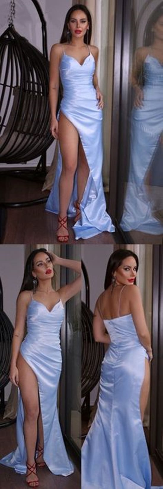 PSY576,Sexy Long Prom Dresses,High Split Satin Evening Dresses