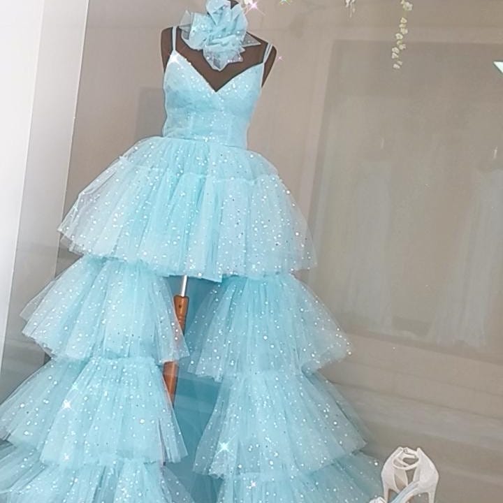 PSY591,Stunning Sequins Long Prom Dresses,Layers Spaghetti Straps Evening Gown