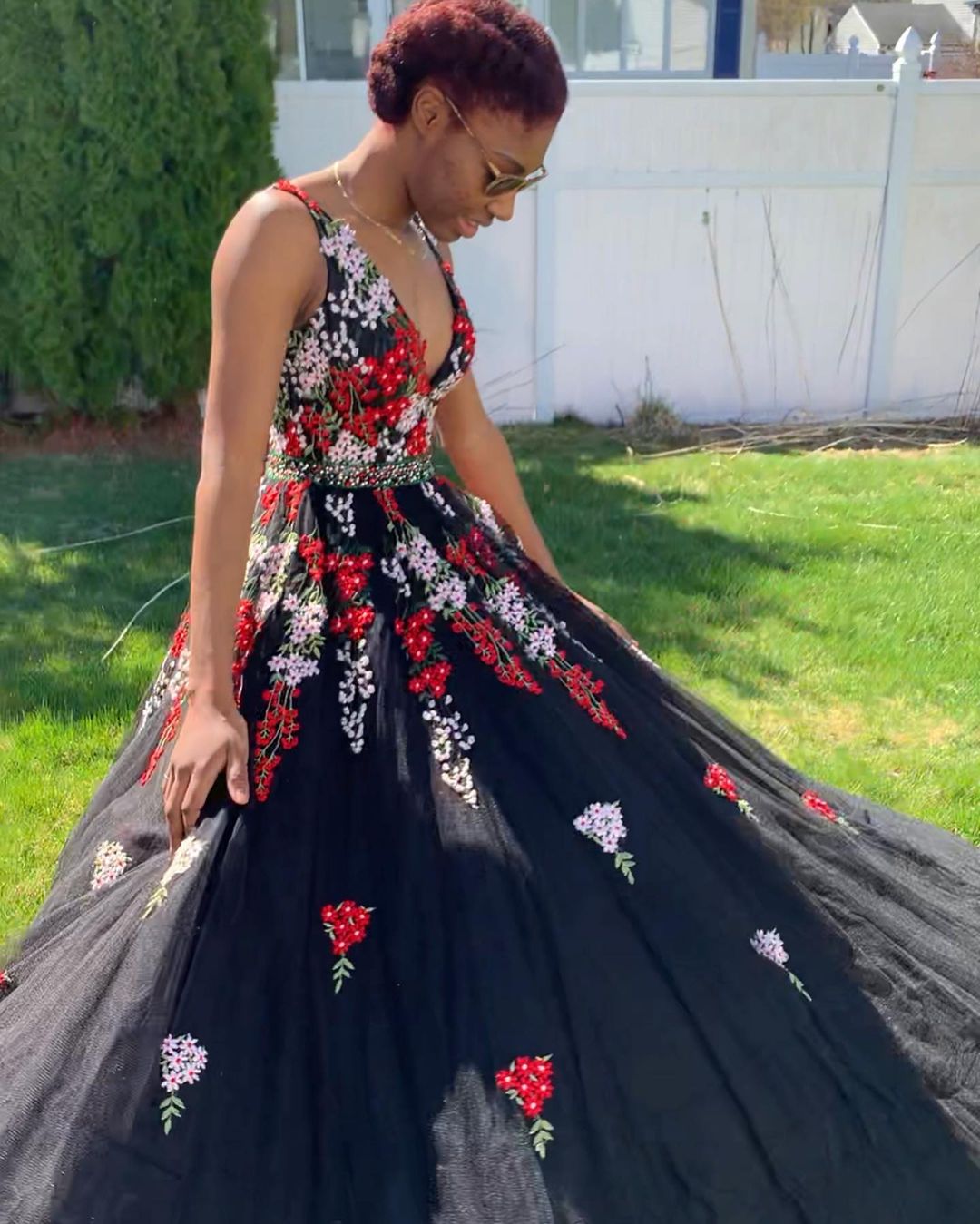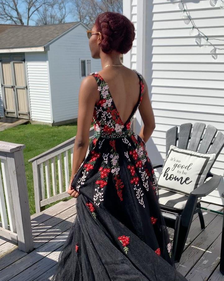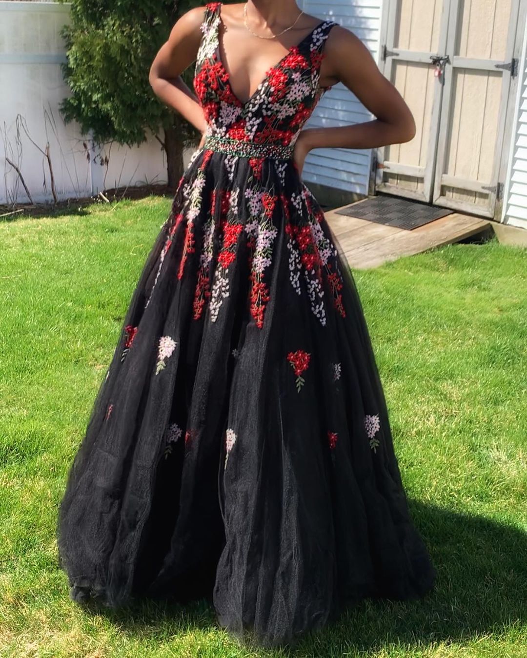 PSY592,Black A line Tulle Applique Prom Dresses,Floor Length Embroidery Evening Formal Gown