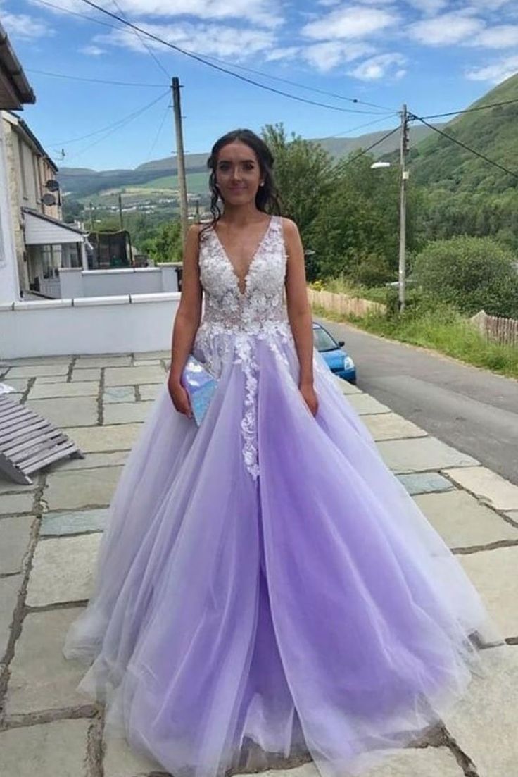 PSY786,Lilac tulle a-line prom dresses white floral evening party dress