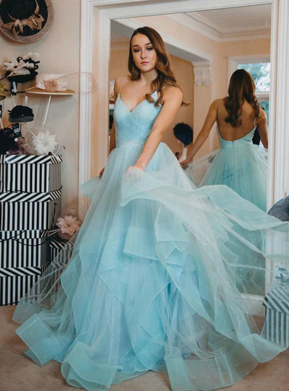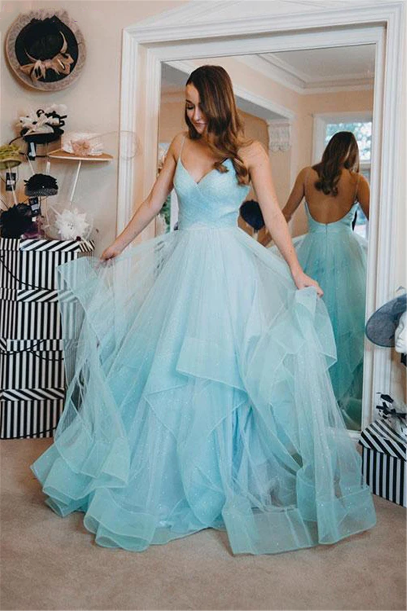 PSY797,Mint green prom dress,tulle layers long evening dresses,spaghetti straps party gown