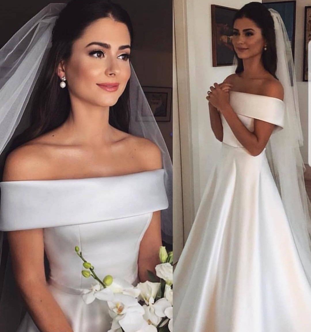 PSY218,Simple Off-shoulder Ivory Long Stain Wedding Dresses,White Wedding Gown