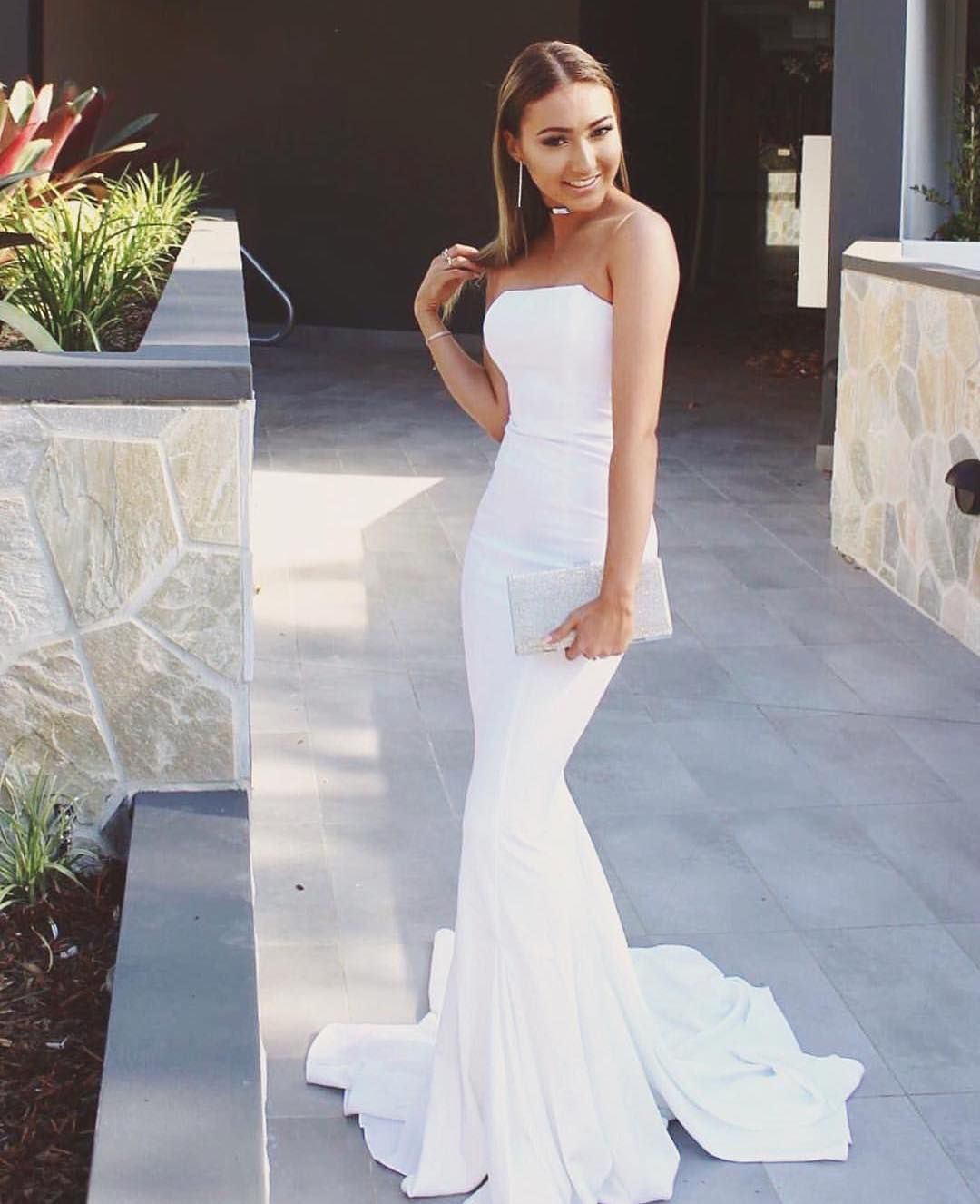 PSY245,Charming White Strapless Mermaid Prom Dress with Sweep Train,Sexy Evening Dress