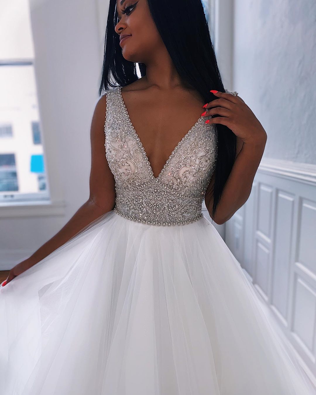 PSY618,Luxury beading tulle a line wedding dresses,wedding gown v neck bridal dress