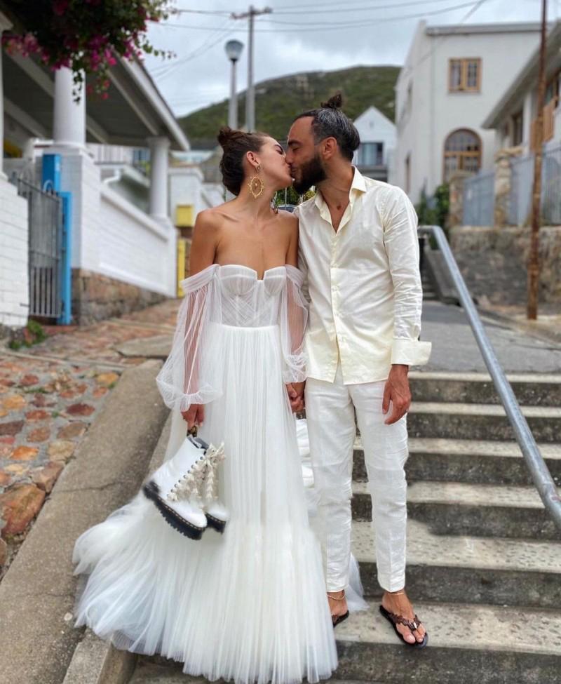 PSY624,Wedding Dresses Boho Off the Shoulder Long Puff Sleeves Ruffled Wedding Gown A-Line White Ivory Beach Bridal Dress