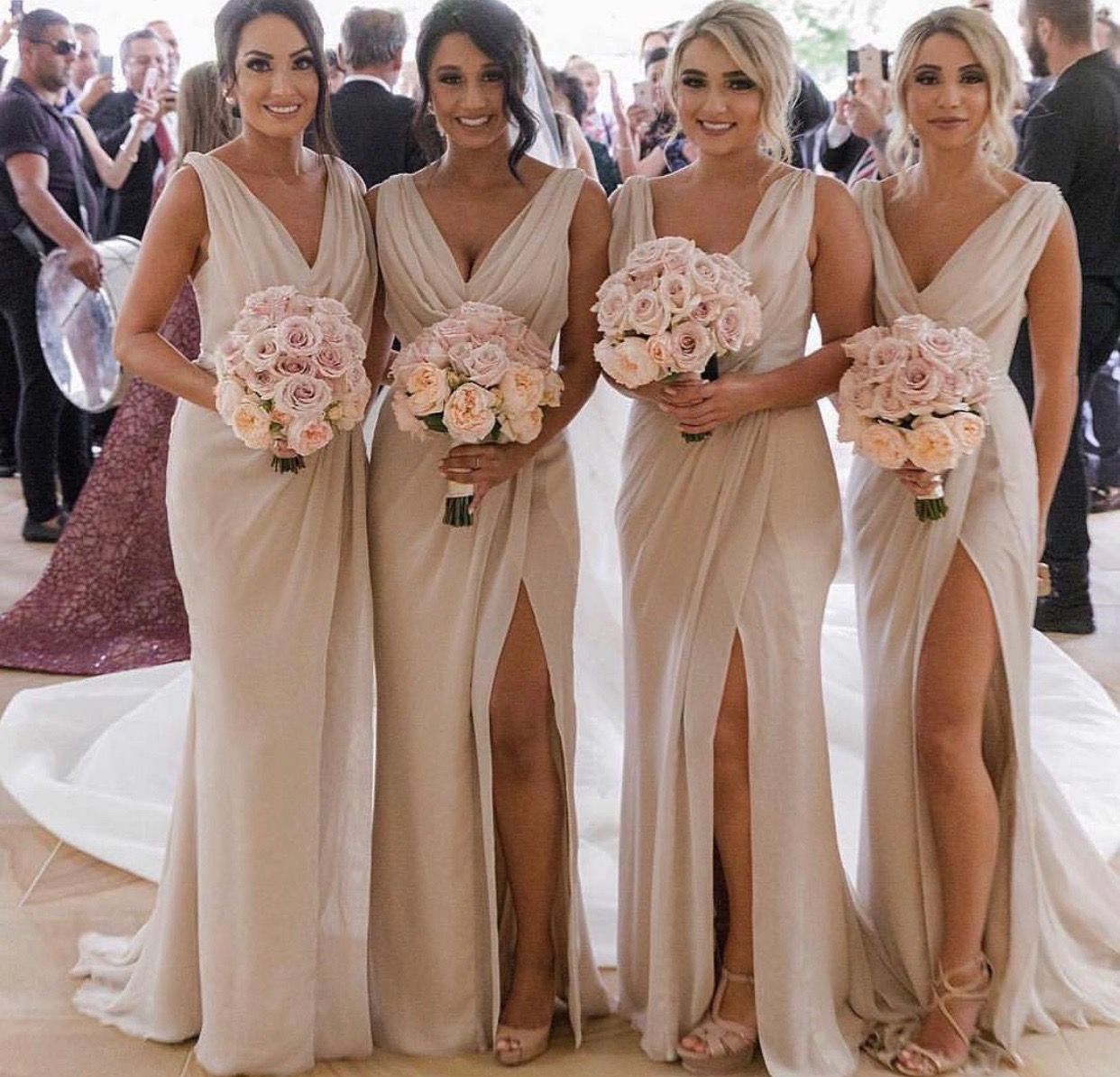 PSY260,Mermaid / Trumpet V Neck Sweep / Brush Train Chiffon Bridesmaid Dress with Pleats / Ruching