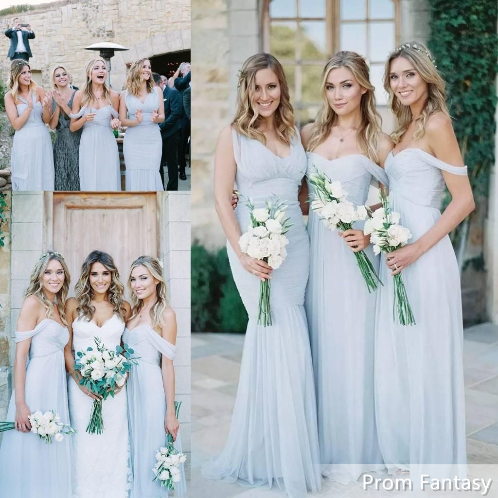 PSY263,Mismatched Tulle Mermaid Blue Elegant Long Bridesmaid Dresses