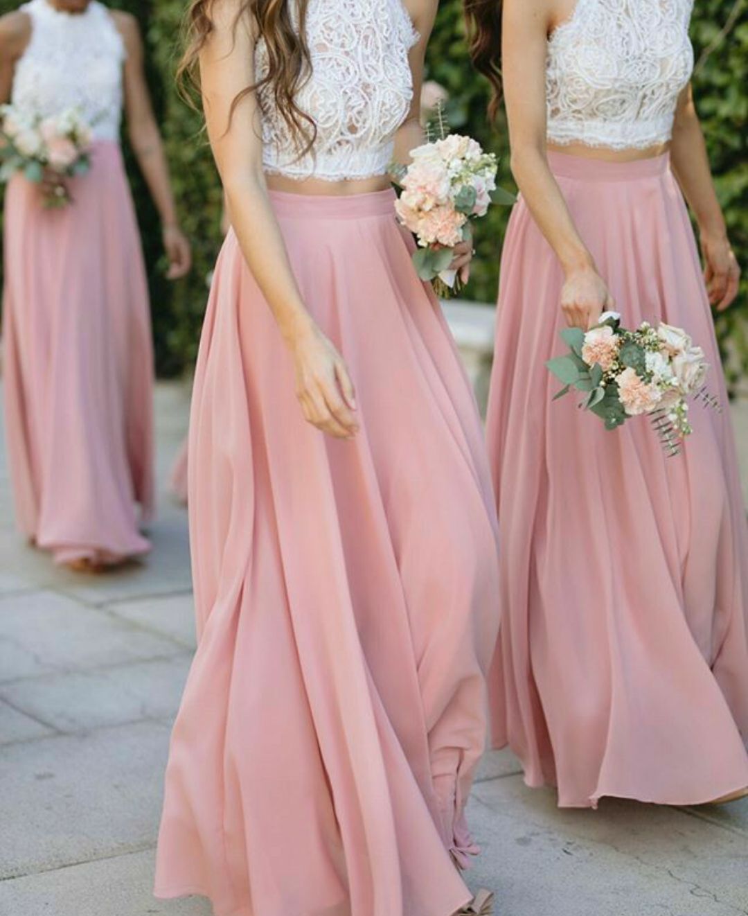 PSY278,Two Piece Long Bridesmaid Dresses Top with Lace