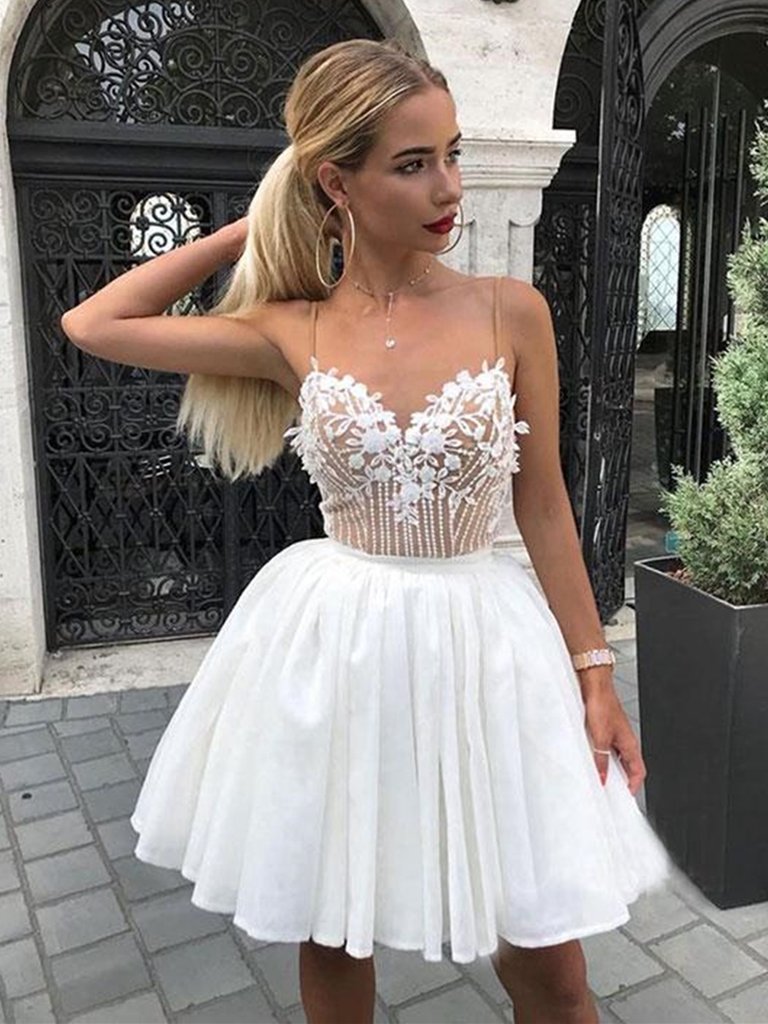 PSY010,Spaghetti Straps V Neck Short Prom Dress with Appliques