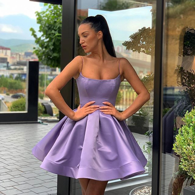 PSY044,Stylish A Line Spaghetti Straps Purple Short Homecoming Dresses with Ruffles