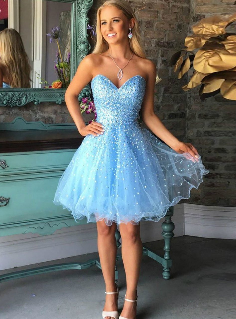PSY056,Blue Sweetheart 16 Dresses,Sweetheart Homecoming Dress,Tulle Homecoming Dress