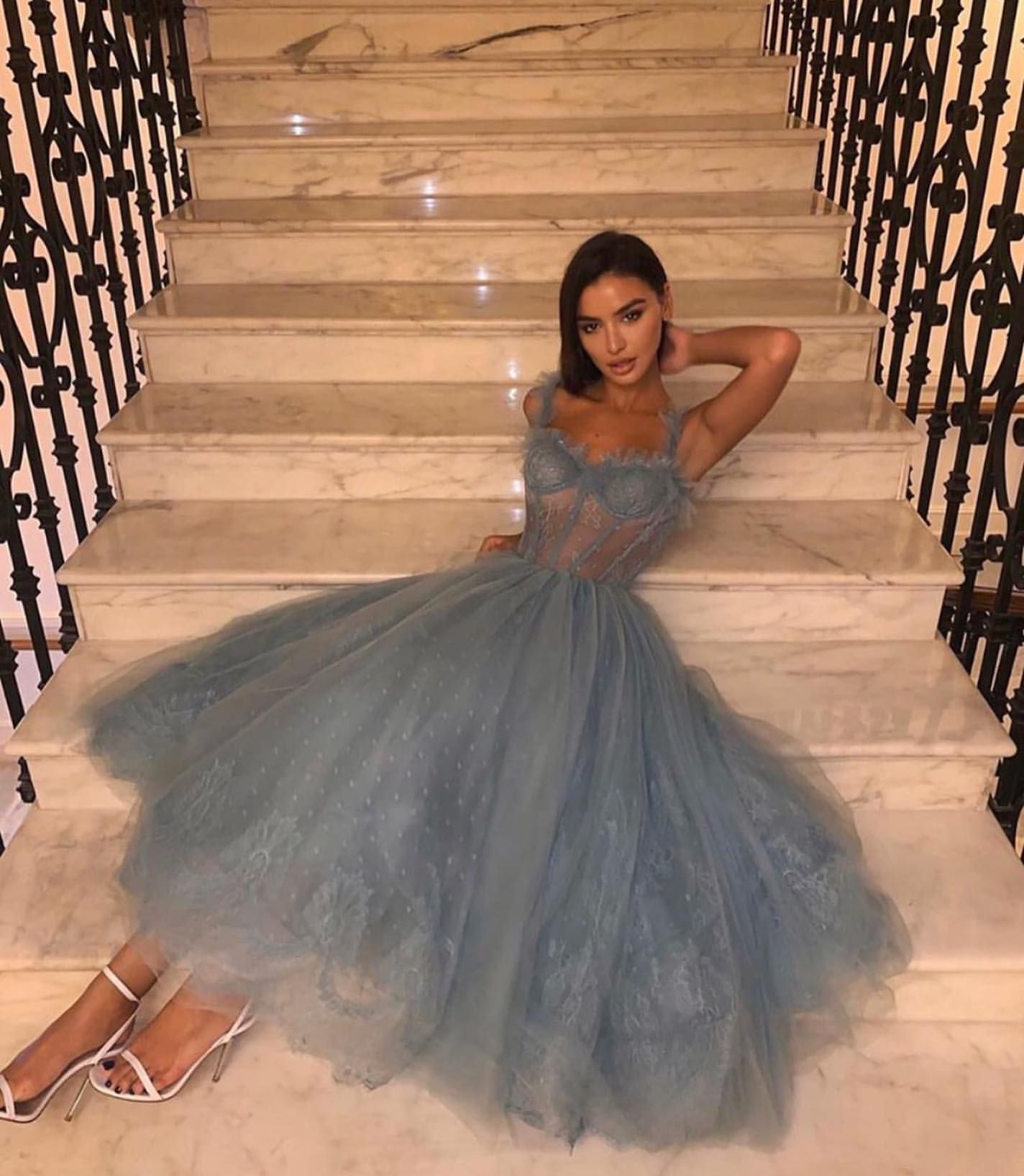 PSY124,Sparkle Blue Lace Ruffles Homecoming Dresses,A-Line Lace Princess Hoco Dresses