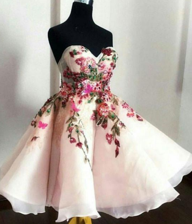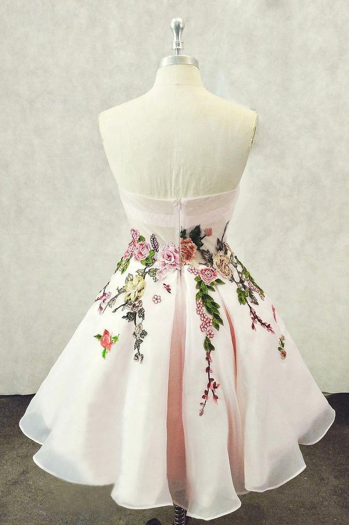 PSY183,Light pink sweetheart neck chiffon lace applique short prom dress