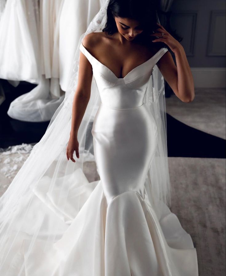 PSY216,Mermaid Off the Shoulder Simple Beach Long Wedding Dresses