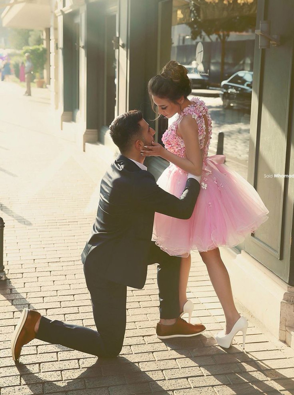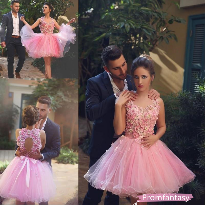 PSY577,Pink Flowers Beaded Homecoming Dresses,Halter Floral Graduation Dresses