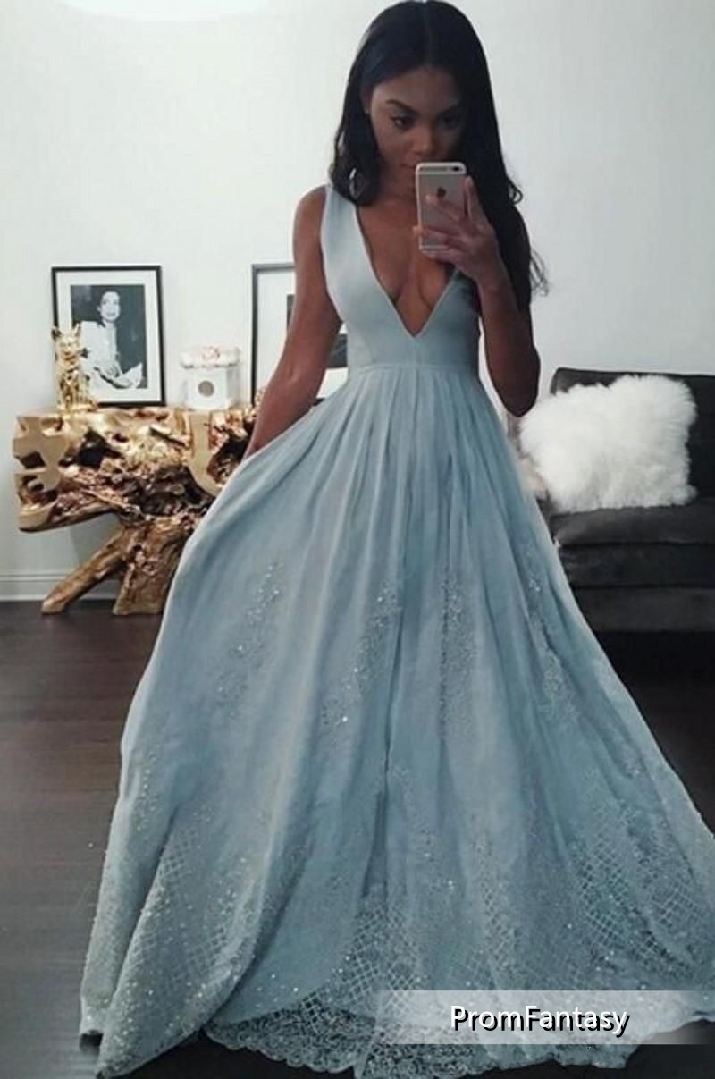 PSY679,Elegant light blue v-neck sequin long prom dresses,sleeveless a-line evening party gown