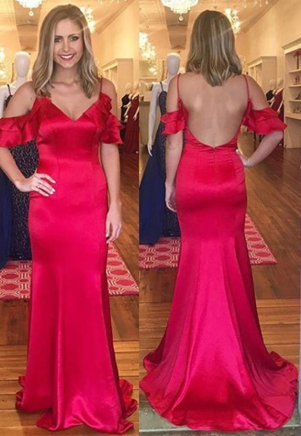 PSY729,Charming Open Back Sexy Satin Prom Dress Spaghetti Straps Women Evening Dress