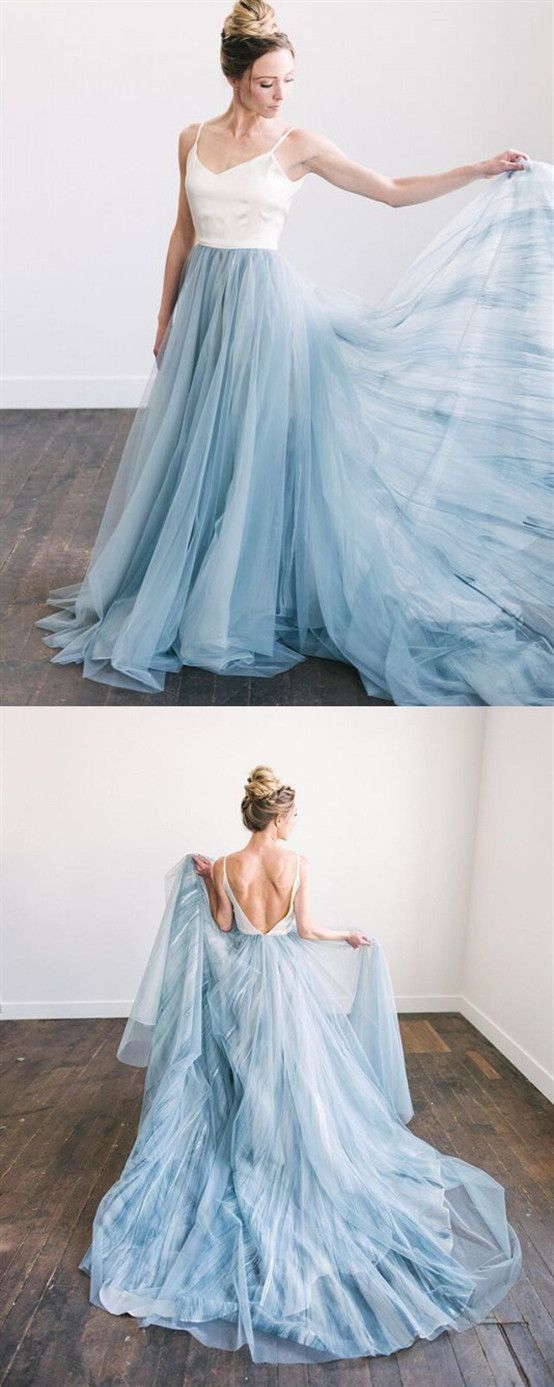 PSY782,White Blue Chiffon Prom Dresses,Spaghetti Straps A-Line Evening Party Dress