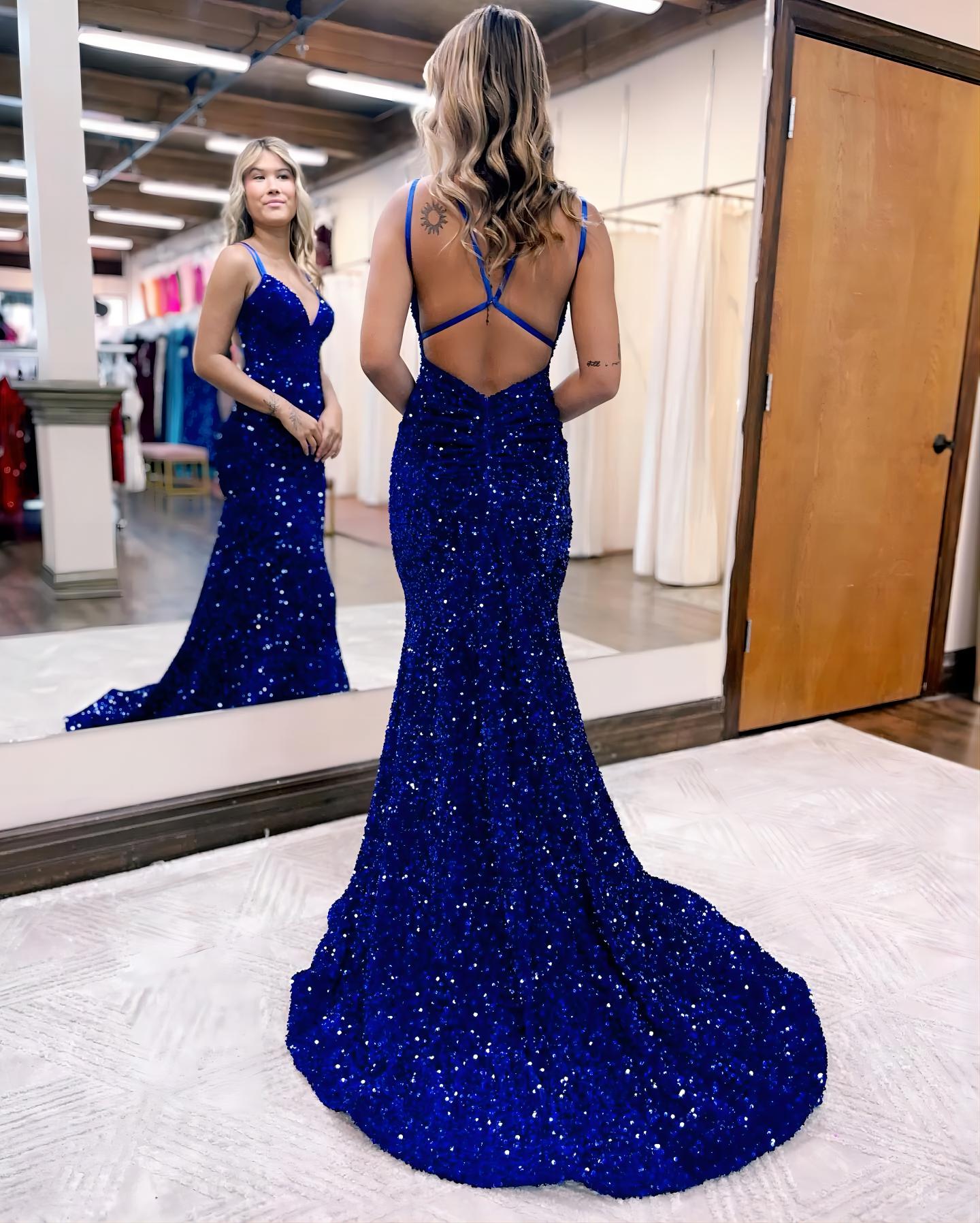 PSY841,Mermaid Sequined Long Prom Dresses,Blue Evening Dresses