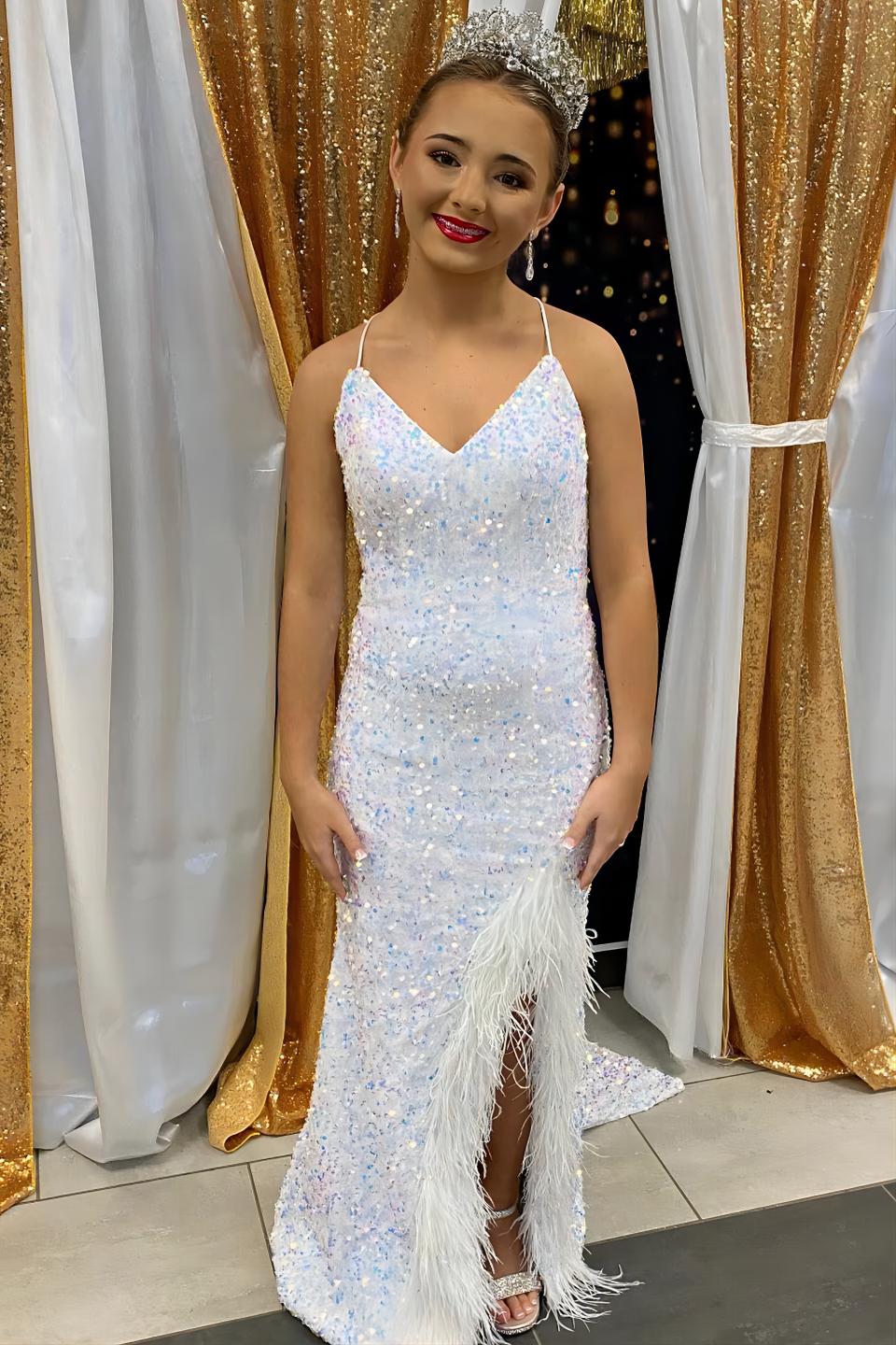 PSY847, Fuchsia Spaghetti Straps Mermaid Sequiin Long Prom Dress